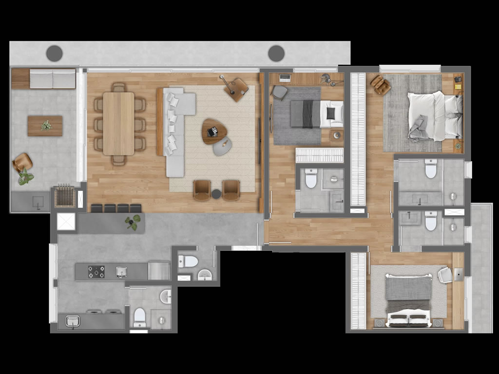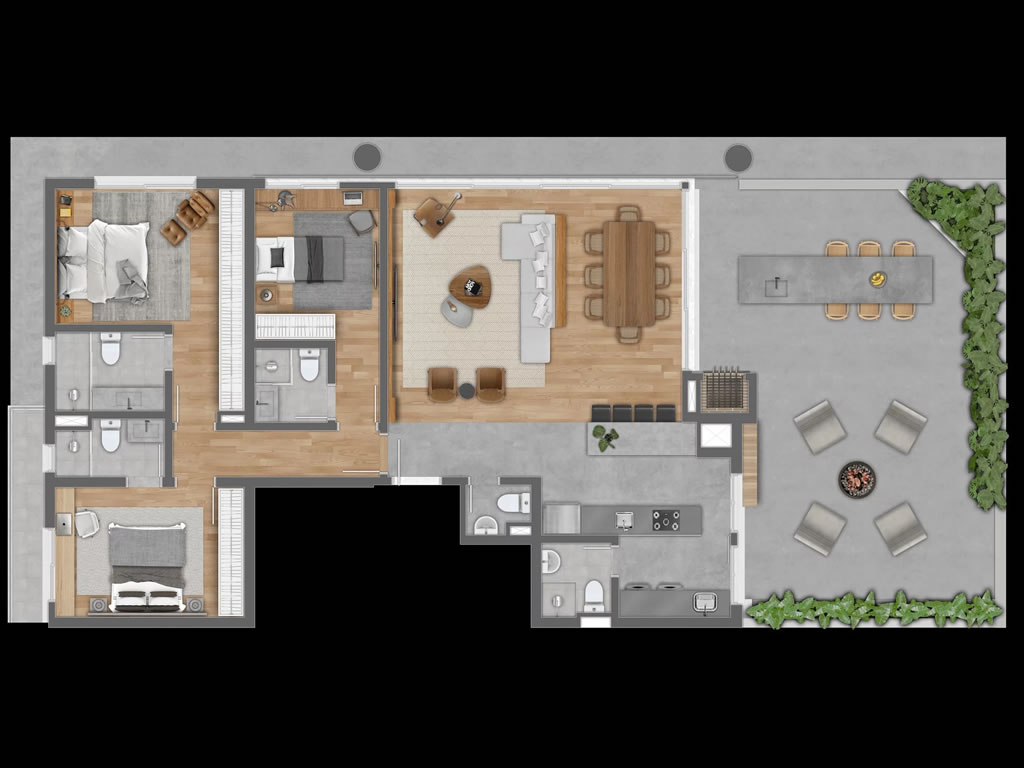 São apartamentos Tipo, Garden e Coberturas, com metragem de 136 a 209 m², dormitórios suítes, sacadas, 2 ou 3 vagas de garagem e opções com living estendido, tudo em uma infraestrutura pensada no conforto e comodidade.